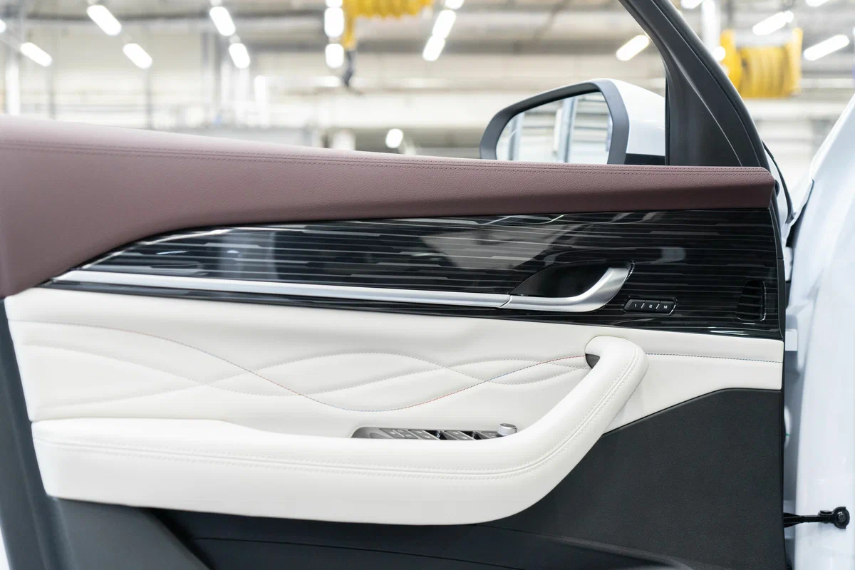 Высококачественная отделка приборной панели и дверных панелей кожей, замшей и мягким пластиком